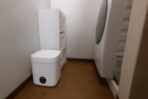 約250×270×270mmで、脱衣所や棚にも置きやすいコンパクト設計。